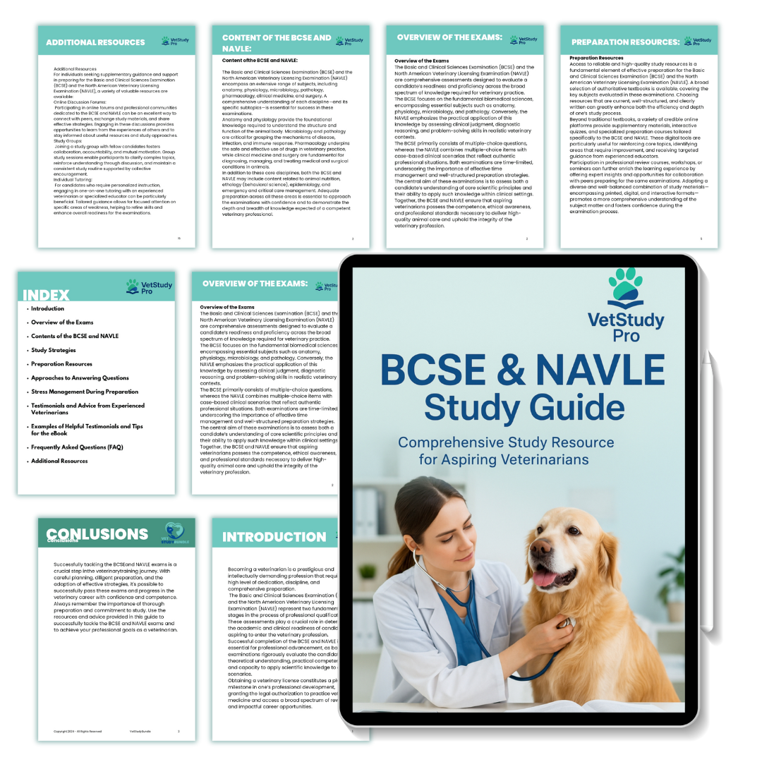Stop second-guessing what topics will actually show up on exam day. This guide breaks down the exact content areas tested on both BCSE and NAVLE exams, with focused review sections for high-yield topics. You'll get clear explanations of complex concepts, practice questions that mirror real exam formats, and strategic study tips from students who've already passed.